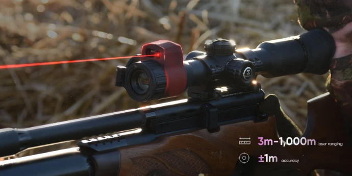 L’ALPEX 4K Lite A40EL intègre un télémètre laser capable de mesurer jusqu’à 1000 mètres avec une précision de ±1 mètre.